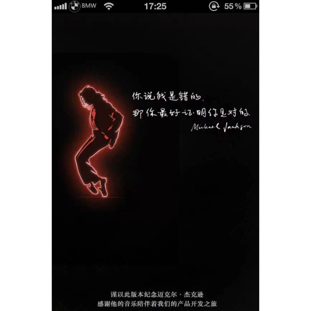 微信早期的 3.0 版本,启动界面专门纪念迈克尔·杰克逊。